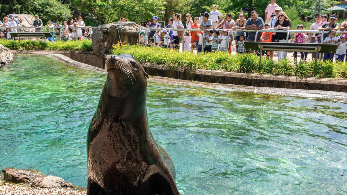 Among the most well-liked residents of the zoo are the sea lions. Their voices sound like hoarse growls. What’s interesting is that on average, sea lions live 20 to 30 years in the wild. Male California sea lions can grow to be eight feet long and weigh over 1,000 pounds, while females are usually about six feet long and weigh up to 250 pounds. They have a big appetite, eating up to 5-8% of their body weight at a time. When swimming, they can zip through the water at speeds of 25 to 30 mph.
